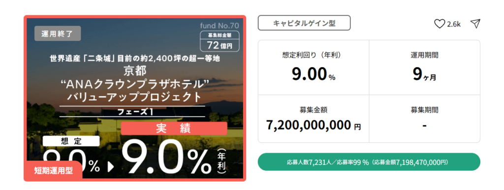 こういった案件を安定して投資していただきながら、利益率の高い短期案件にも投資していただく。