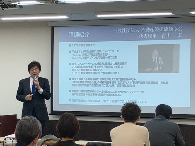 競売不動産取扱主任者実務講座を東京にて開催。 第1部 法務省民事局参事官による「民事執行手続等のデジタル化に関する改正法」について 第2部 石坂講師による「三点セットの読み方」について 今回の事例は中級者以上のやや難易度の高い三点セットの深読みとなりました。 第3部 青山代表理事による「最新データをお用いた競売市場の動向」などについて講義を行いました。 主任者講座並びに懇親会へ参加された主任者の皆様、ありがとうございました。